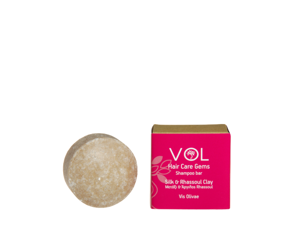 Deze solide shampoo combineert Rhassoul klei (Marokkaanse lava clay) met zijdeproteïnen voor een zachte, grondige reiniging zonder te strippen. De klei bindt talg en onzuiverheden, terwijl zijde je haar laat glanzen en soepel maakt. Ideaal als je haar snel vet wordt of futloos oogt.